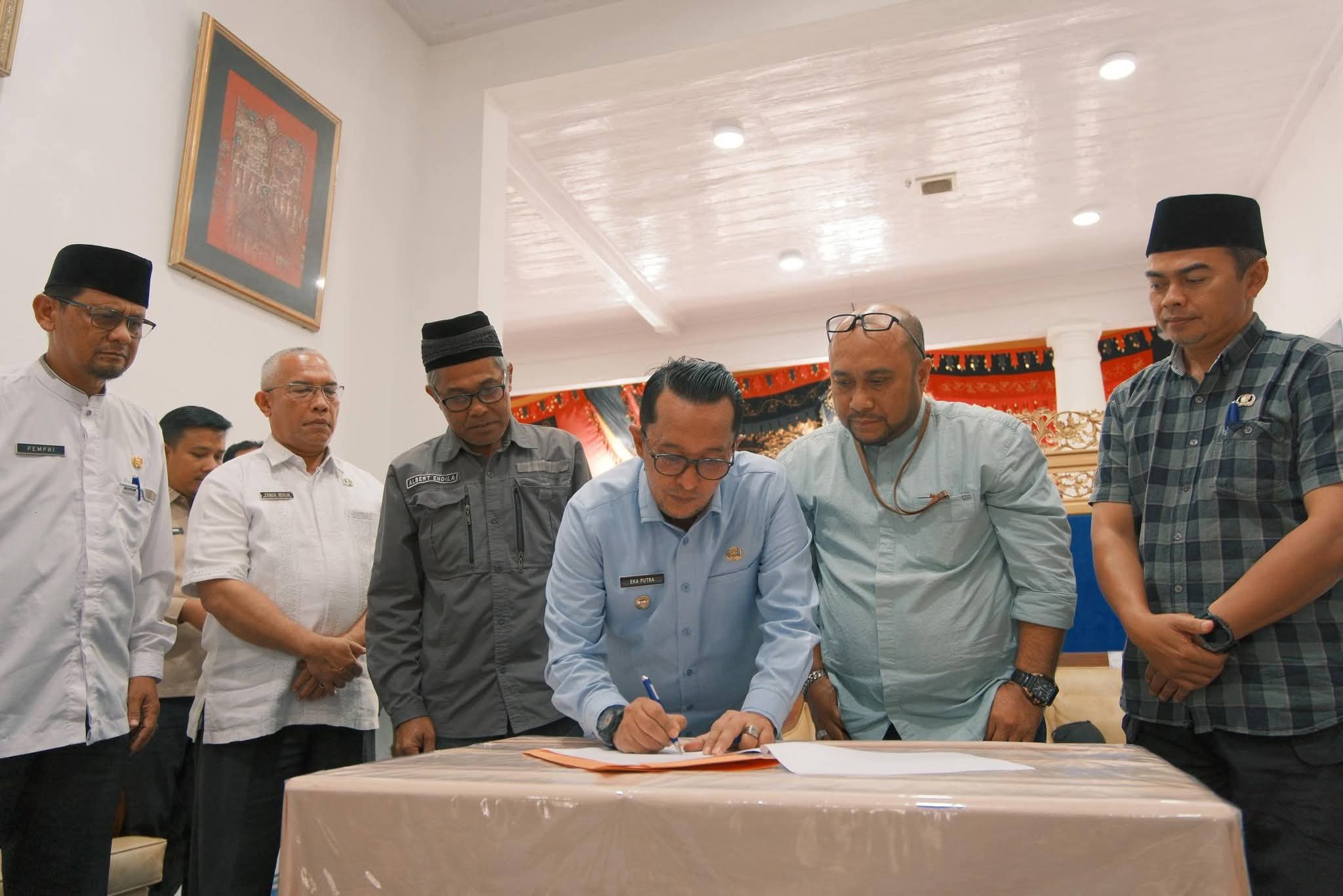 Penyerahan yang dilaksanakan di gedung Indojolito Batusangkar, Jumat (6/2) tersebut juga disaksikan langsung oleh Asisten Ekobang Ten Feri, Site Operational Manager PT. Nindya Karya Hendra, Kalaksa BPBD Ermon Revlin, Kadis Sosial PPPA Hendra Setiawan, Kadis PUPR Mustika Suarman, Kadis Kominfo Dedi Tri Widono, Kadis LH Pempri, Kabag Hukum Audia Safitri, Camat Batipuh Selatan Ujang As’ad, Wali Nagari dan undangan lainnya.