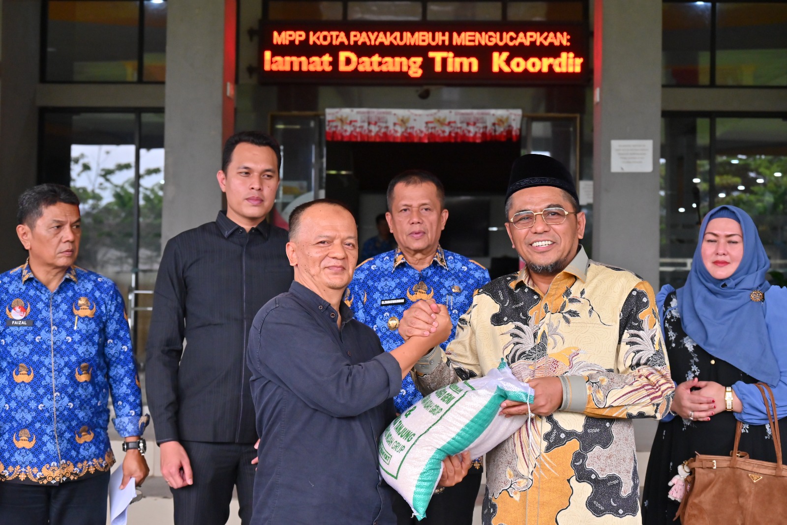 Payakumbuh — Sebanyak 281 KK pedagang yang menjadi korban kebakaran Pasar Payakumbuh kembali menerima bantuan beras dari Anggota Komisi XIII Dewan Perwakilan Rakyat (DPR) RI, Arisal Aziz, di Lobi Balai Kota Payakumbuh, Jumat (17/10/2025) sore.