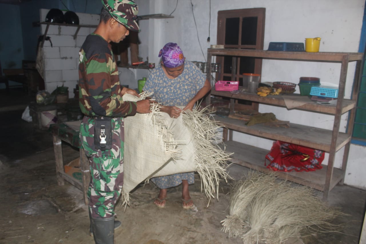 Sertu Agus mendekat, menanggalkan sekat antara seragam dan kehidupan warga. Ia berjongkok, menyapa hangat, memperhatikan jemari renta yang tetap lincah menari di atas anyaman. Percakapan mereka sederhana, namun mengandung kedalaman: tentang pemasaran, tentang harga bahan baku, tentang harapan agar karya tradisional tak lekang oleh zaman.