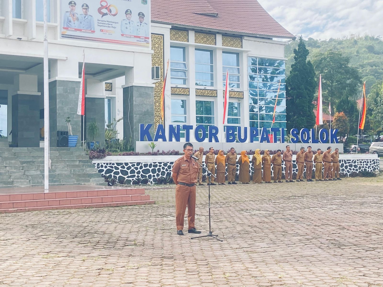 Apel pagi ini diikuti oleh para Staf Ahli, para Asisten Bupati, Kepala OPD dan seluruh Aparatur Sipil Negara (ASN) dan tenaga honorer di lingkungan Pemerintah Kabupaten Solok. (Cha)