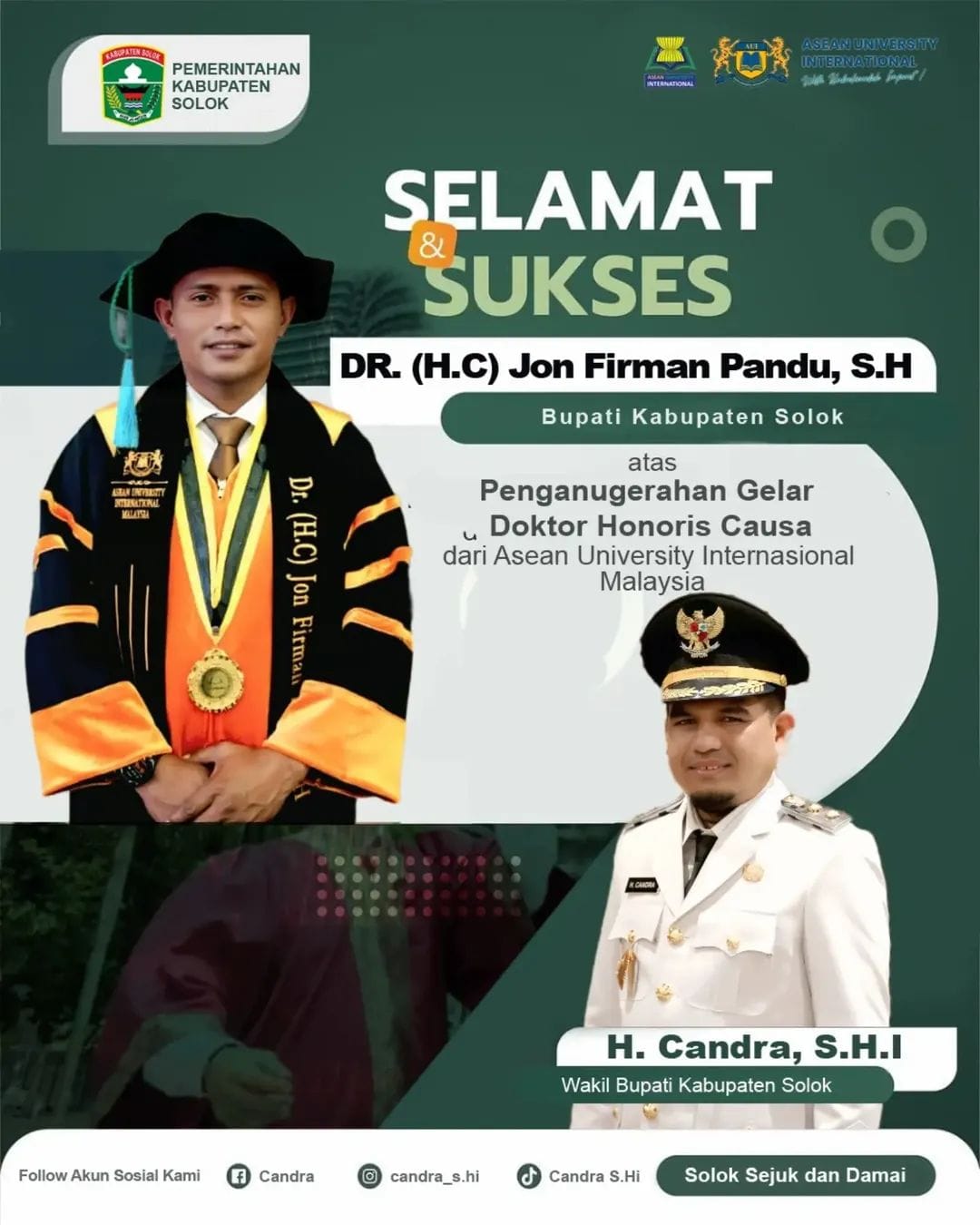 Menurutnya, Asean University International memiliki komitmen kuat untuk memberikan penghargaan akademik kepada tokoh-tokoh yang memiliki rekam jejak kepemimpinan, integritas, serta peran nyata dalam mendorong kemajuan masyarakat dan pembangunan berkelanjutan.