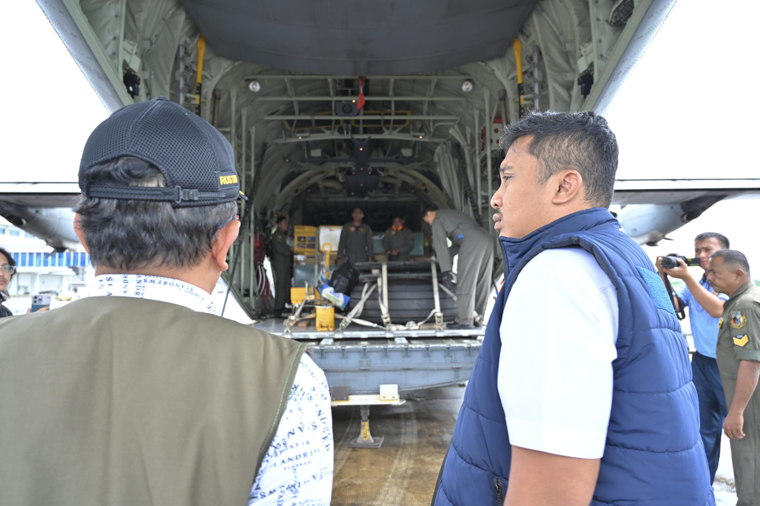 Bantuan Presiden yang tiba di Sumbar diangkut menggunakan pesawat Hercules A-1339 TNI AU, berisi antara lain tenda, alat penunjang peralatan komunikasi, genset, perahu karet, serta paket makanan cepat saji. Seluruh logistik tersebut diturunkan dan langsung dipindahkan menuju jalur distribusi kabupaten/kota.