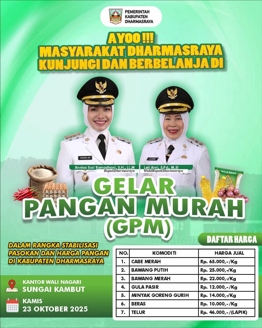Kegiatan GPM ini merupakan bentuk nyata perhatian Pemerintah Kabupaten Dharmasraya di bawah kepemimpinan Bupati Annisa Suci Ramadhani, dan Wabup Leli Arni terhadap kesejahteraan masyarakat, khususnya dalam menjaga keterjangkauan harga kebutuhan pokok.