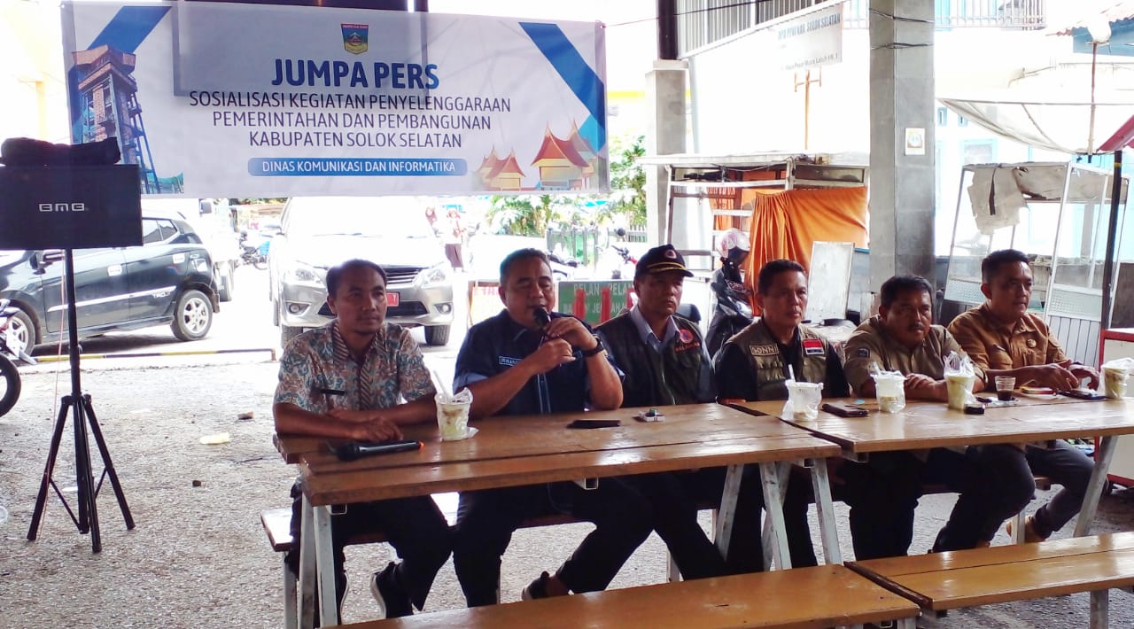 Hadir dalam jumpa pers tersebut, Plt Kadiskominfo Irwanesa, Sekretaris Diskominfo Sony Andesta, Sekretaris BPBD Solok Selatan Sonni Patrisia, Kabid Kedaruratan dan Logistik BPBD Solsel Dahrizal, Kabid Rehabilitasi dan Rekonstruksi BPBD Solsel Fauzan Mahmudi. (Joko)
