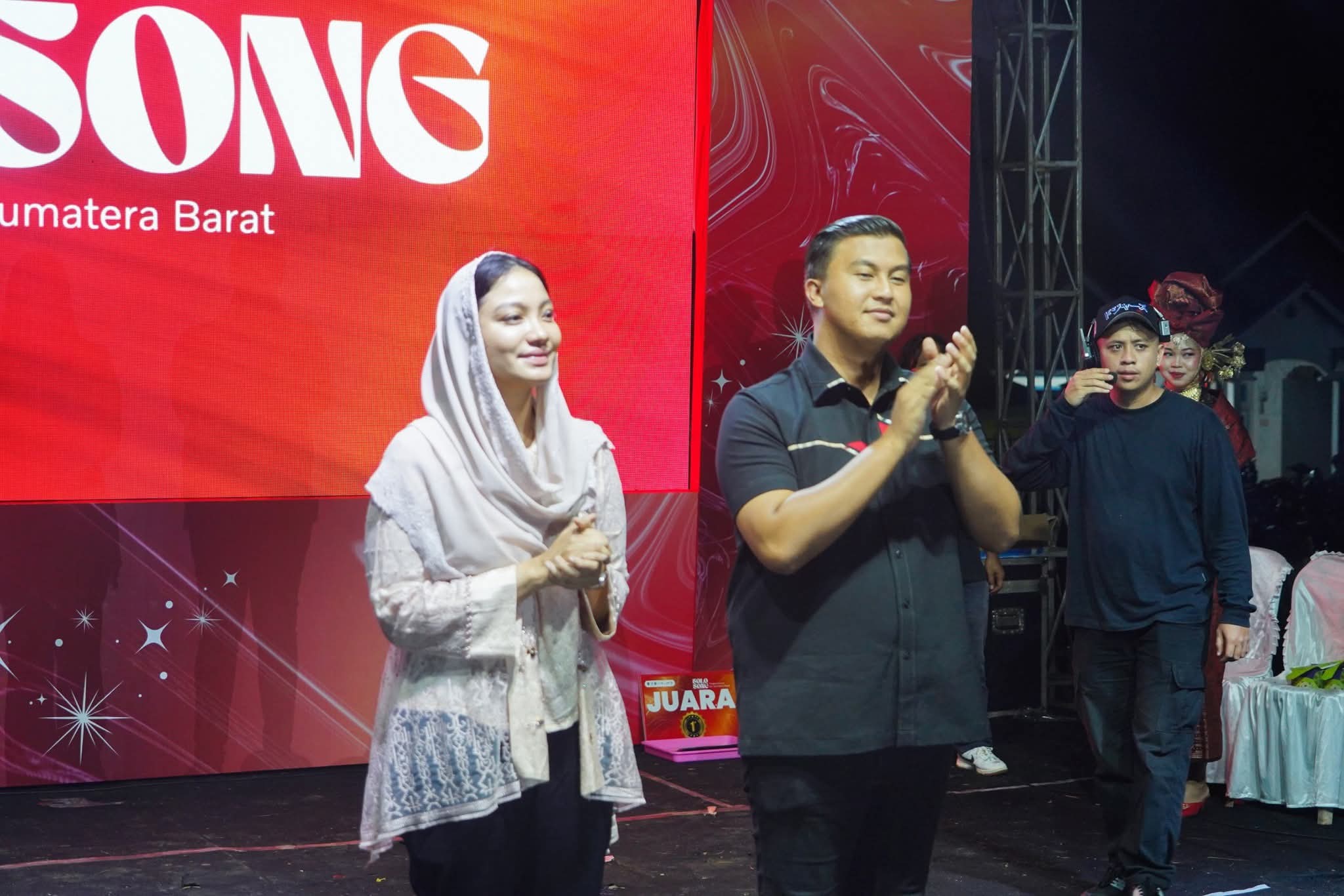 Sungai Rumbai – Bupati Dharmasraya Annisa Suci Ramadhani bersama Wakil Bupati Leli Arni menghadiri Malam Puncak Pasar Ekraf dan Lomba Solo Song yang digelar di Sungai Rumbai pada Sabtu malam, 29 November 2025. Kegiatan ini merupakan realisasi dari pokok-pokok pikiran Anggota DPRD Sumatera Barat, Varel Oriano, yang mendorong penguatan subsektor seni dan ekonomi kreatif di Dharmasraya.
