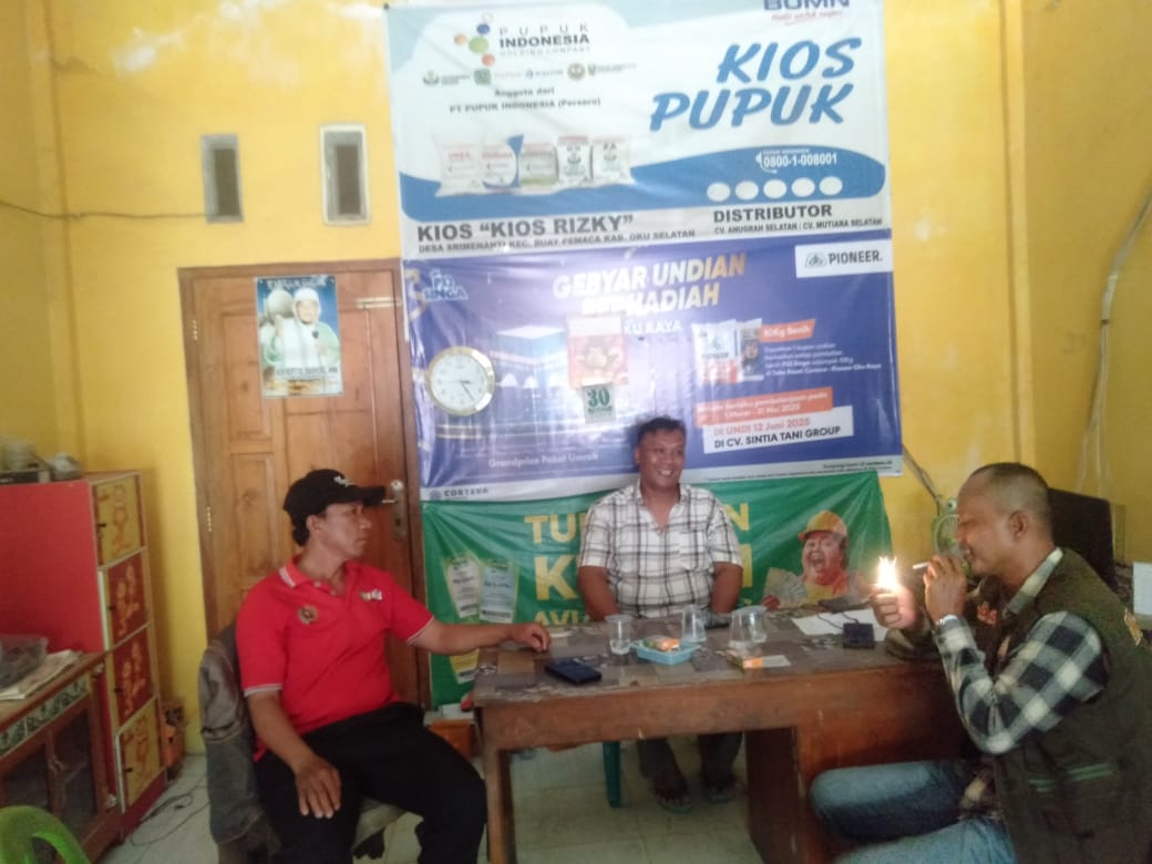 Pemilik kios pupuk dan bahan bangunan Fathurrahman, S Pd.I, berbaju putih. (Dok. Sry)