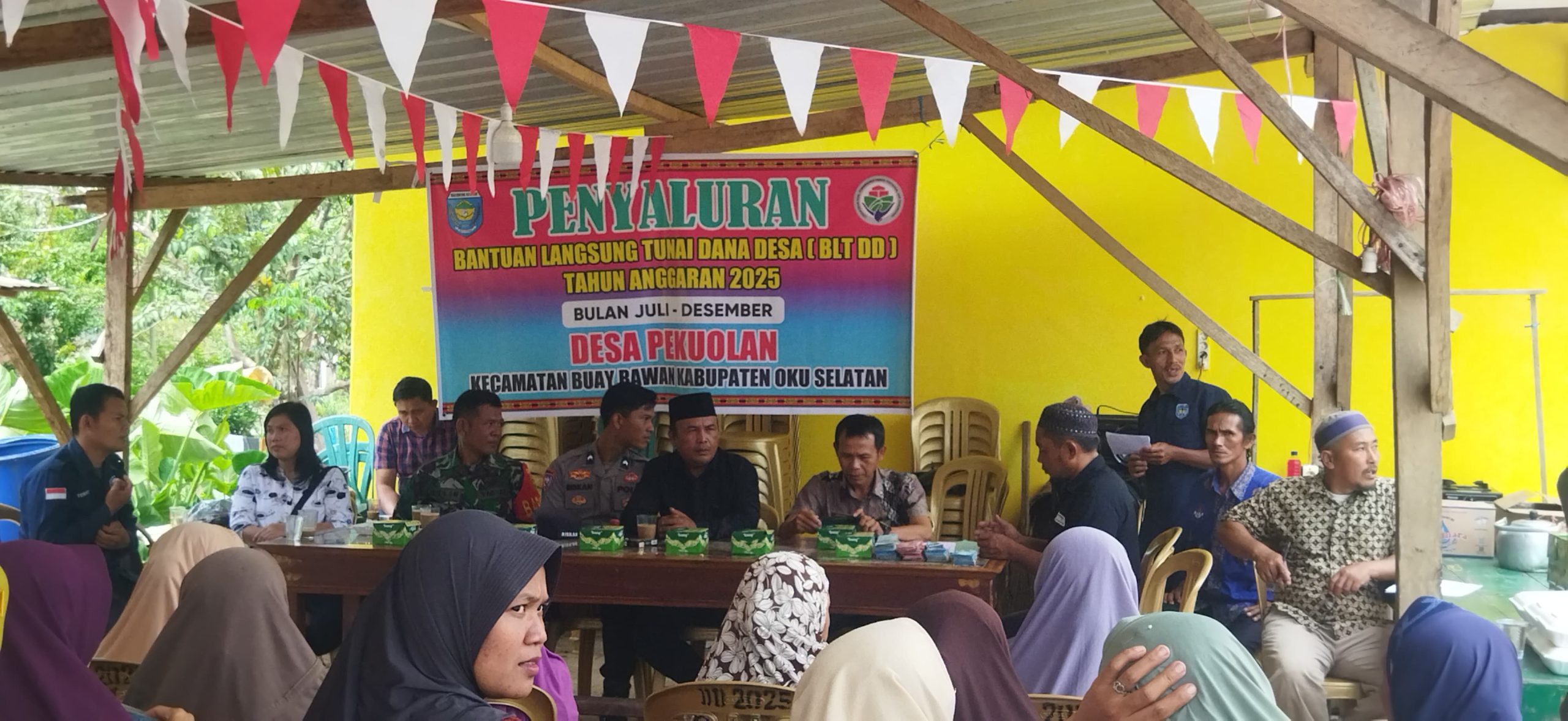 Oku Selatan — Kepala Desa Pekuolan, Buay Rawan, Oku Selatan, Rasman Zamaan melakukan Penyaluran Bantuan Langsung Tunai (BLT DD) tahap II untuk periode Juli hingga Desember 2025. BLT DD ini diterima langsung oleh 29 Keluarga Penerima Manfaat yang digulirkan pemerintah pusat.