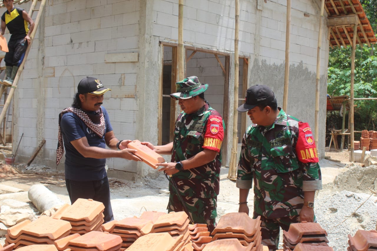 Dandim berdiri, lalu menatap bangunan yang sedang tumbuh itu—dinding yang mulai tegak, rangka atap yang siap menantang langit. Ia kemudian melangkah menyusuri lokasi, mengecek progres pekerjaan, berdialog singkat dengan anggota di lapangan, memastikan waktu pembangunan tetap berada di jalurnya.