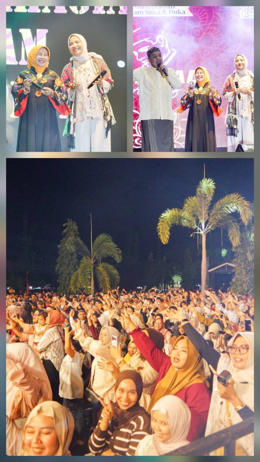 Di tengah penampilannya, Haddad Alwi memanggil Bupati Dharmasraya Annisa Suci Ramadhani dan Wakil Bupati Leli Arni ke atas panggung. Keduanya berdiri berdampingan, tak berjarak dengan rakyat. Mereka ikut bershalawat, menyatu dalam barisan doa bersama.