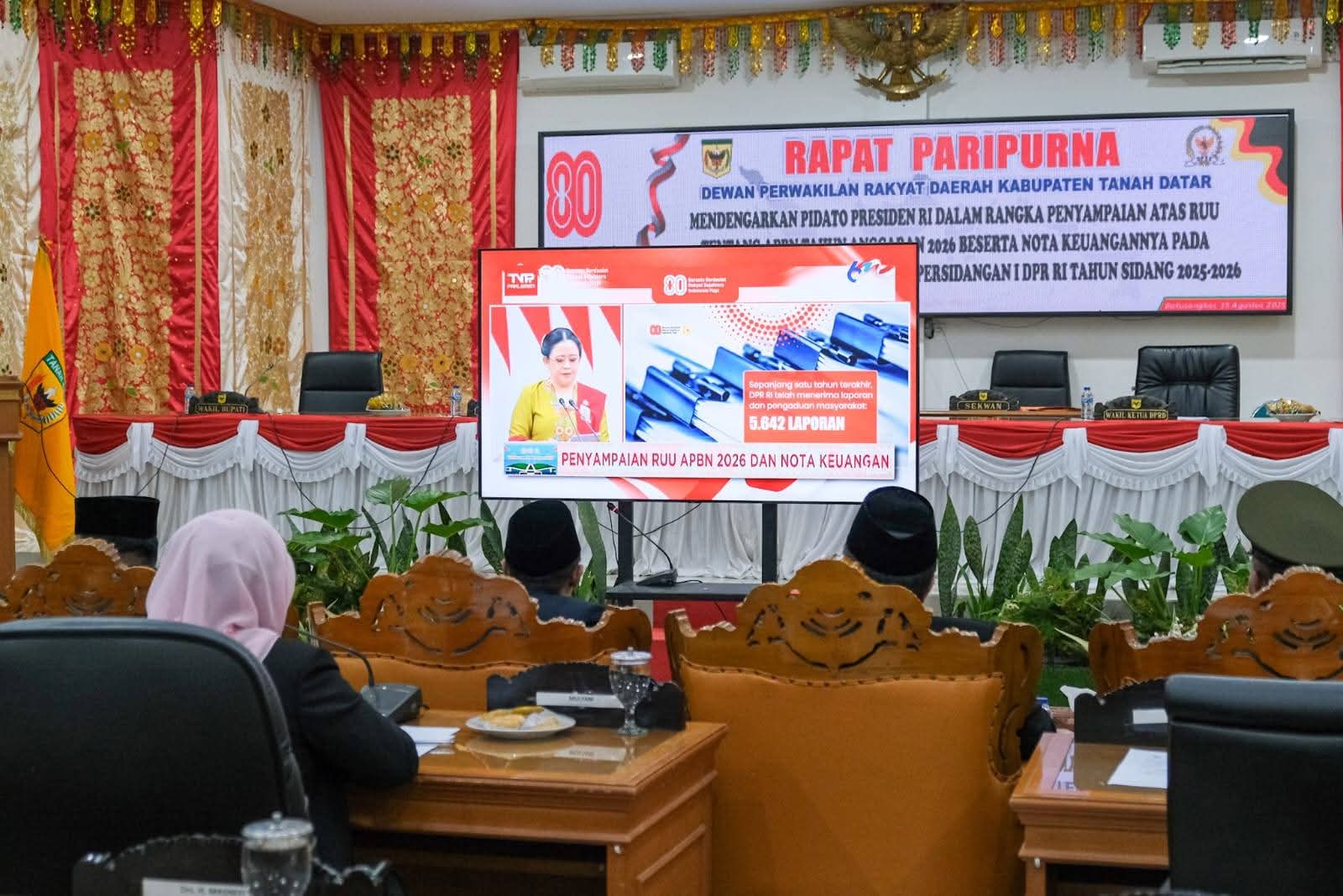 Sementara itu, Ketua DPRD Tanah Datar Anton Yondra menyampaikan, dengan telah disampaikannya pidato Presiden terkait Nota RAPBN tahun 2026, maka ini akan dijadikan tolak ukur dalam merancang, menyusun dan mengsinkronkan Rencana Anggaran Pendapatan dan Belanja Daerah untuk tahun 2026 mendatang.