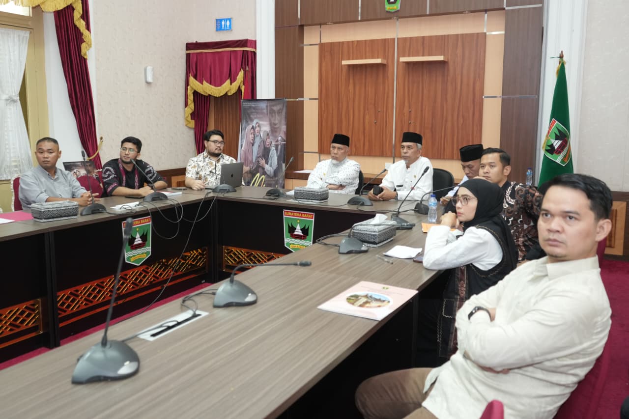 PADANG — Gubernur Sumatera Barat, Mahyeldi Ansharullah, menerima audiensi dari Production House Smaradana Pro, tim kreatif di balik film “Nia, Gadis Minang Penjual Gorengan”, di ruang rapat Istana Gubernur, Jumat (24/10/2025).