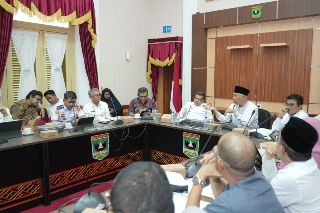PADANG — Gubernur Sumatera Barat, Mahyeldi Ansharullah, memimpin rapat penting membahas rencana penataan kawasan dan pembangunan infrastruktur di Padang Lua, Kabupaten Agam, Jumat (24/10/2025) di ruang rapat Istana Gubernur.