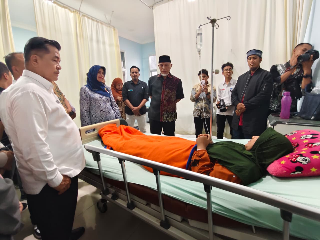 Lubuk Basung — Gubernur Sumatera Bara, Mahyeldi Ansharullah para pelajar yang menjadi korban dugaan keracunan Makanan Bergizi Gratis (MBG), Kamis (2/10/25) di RSUD Lubuk Basung, Kabupaten Agam.