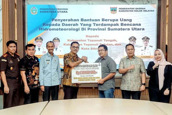 Solok Selatan — Pemerintah Kabupaten Solok Selatan bersama Forum Koordinasi Pimpinan Daerah (Forkopimda) dan Forum Tanggung Jawab Sosial dan Lingkungan Perusahaan (TJSLP) menyalurkan bantuan kebencanaan hasil penggalangan dana pada kegiatan Malam Peduli Bencana Sumatera, dengan total dana terkumpul sebesar Rp1 miliar.