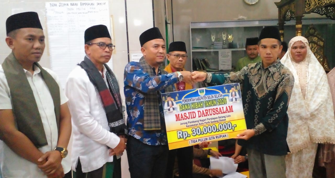 Solok Selatan — Masjid Darussalam di Jorong Panduang, Nagari Persiapan Batang Lolo, Kecamatan Koto Parik Gadang Diateh, menjadi masjid terakhir yang dikunjungi oleh Tim VI Safari Ramadhan Pemkab Solok Selatan pada Kamis (26/2/2026).