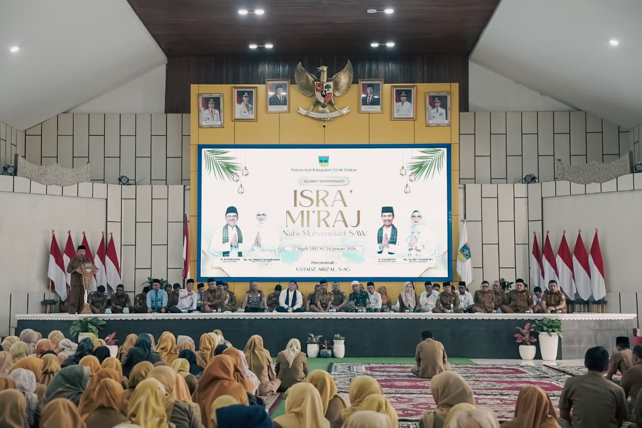 Solok Selatan — Peringatan Isra Mi’raj di lingkungan Pemerintah Kabupaten Solok Selatan dimaknai sebagai pembentukan disiplin, tanggungjawab, kejujuran, dan keikhlasan dalam menjalankan pekerjaan sebagai ASN.