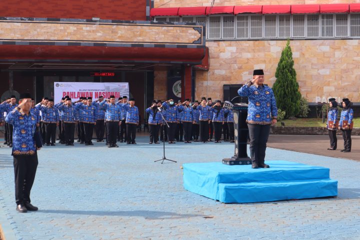 Lebih lanjut, ia mengajak seluruh pegawai untuk meneladani semangat juang para pahlawan di tengah tantangan zaman yang terus berubah. Perjuangan masa kini, tidak lagi dilakukan dengan bambu runcing, melainkan dengan ilmu pengetahuan, integritas, empati, dan dedikasi dalam bekerja.