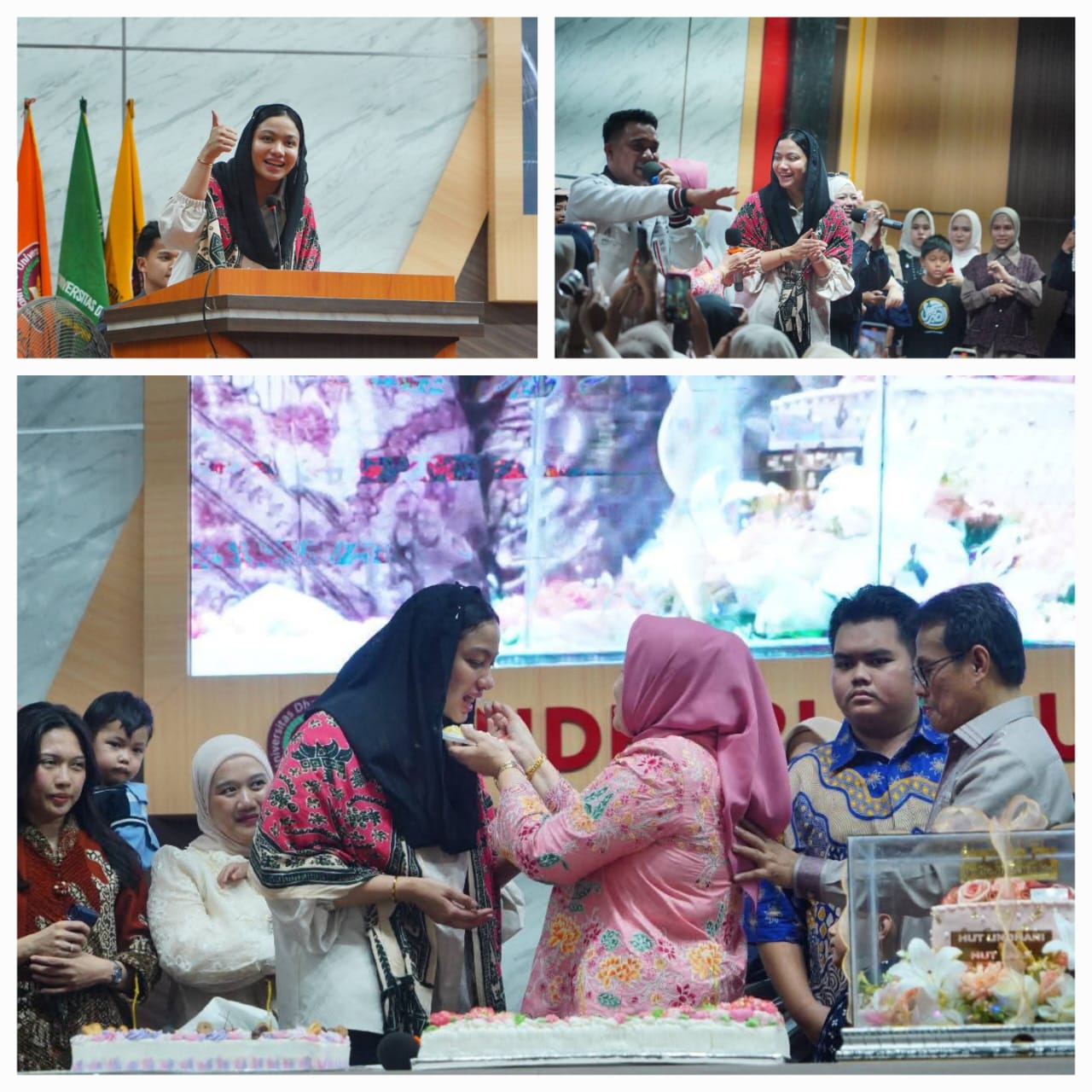 Dharmasraya – Suasana auditorium Dara Jingga, Rabu malam (12/11/2025), berpendar oleh cahaya dan tawa. Di tengah dingin malam Pulau Punjung, suasana hangat mengalir di ruang megah itu. Universitas Dharmas Indonesia (UNDHARI) tengah berbahagia merayakan ulang tahunnya yang ke-18, bersamaan dengan dua momentum lain yang tak kalah istimewa, HUT ke-20 Yayasan Amanah Ampang Kuranji, dan hari lahir sang pendiri sekaligus pembina, Dr. Dra. Hj. Elviana, M.Si.
