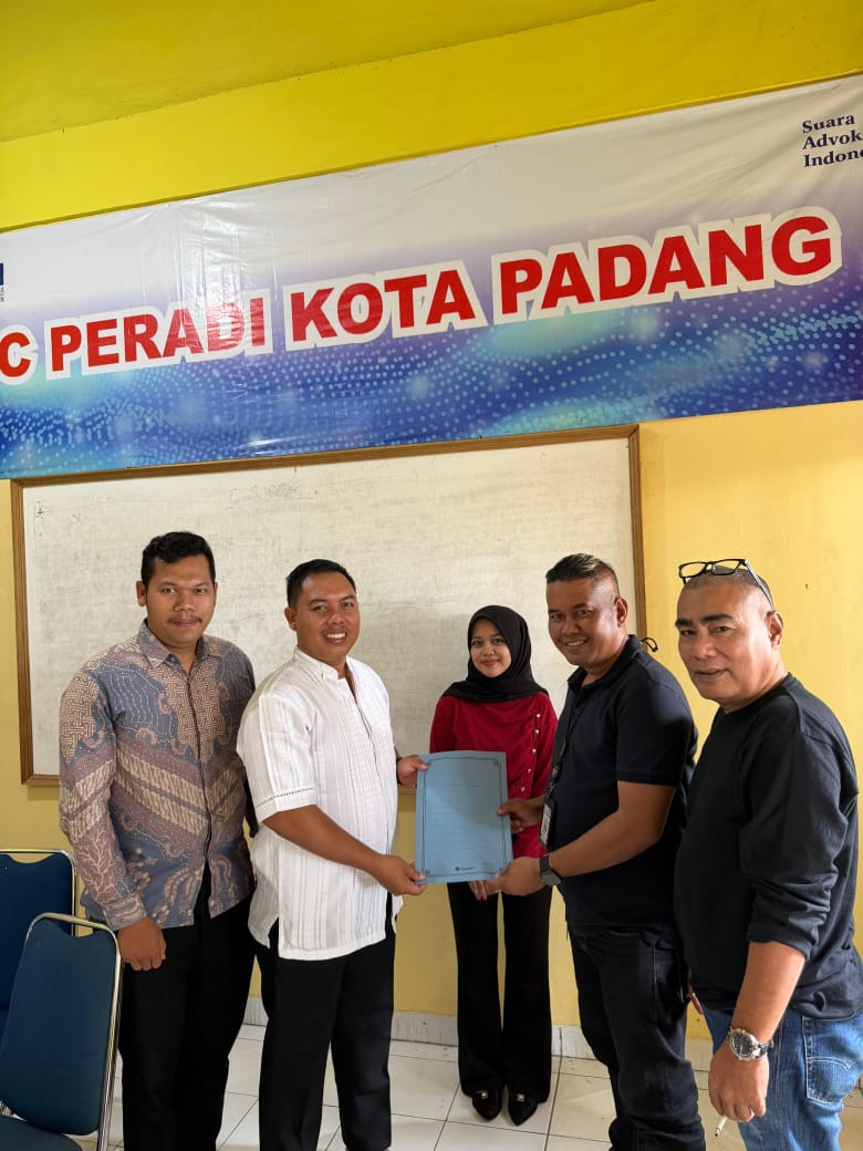 Berkas pendaftaran Muhammad Tito diterima langsung oleh Sekretaris Panitia Musyawarah Cabang (Muscab) III Peradi SAI Padang, Devid Chandra, S.H.