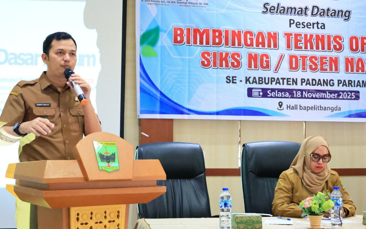 Parik Malintang — Wakil Bupati Padang Pariaman, Rahmat Hidayat, menegaskan komitmen penuh Pemerintah Daerah dalam memastikan bahwa seluruh program bantuan sosial hanya diberikan kepada warga yang benar-benar layak dan berhak. Hal itu disampaikannya saat membuka Bimbingan Teknis bagi Operator SIKS NG/DTSEN Nagari di Aula Bapelitbangda, Selasa (18/11).
