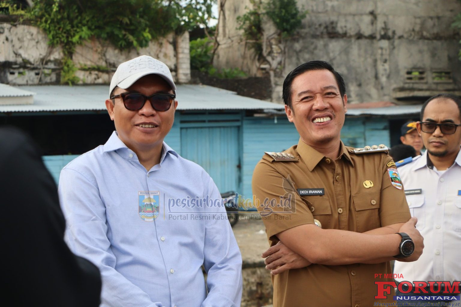 Bupati Pesisir Barat, Dedi Irawan dan komisaris pusat PT. ASDP Indonesia Ferry ( Persero), Achmad Baidowi disela-sela peninjauan Pelabuhan Kuala Stabas, Senin 26/1/2026 (Foto: doc. Diskominfotiksan Pesibar)