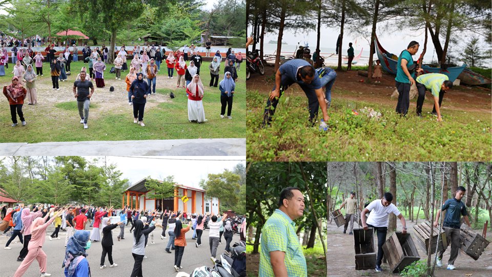 Kota Pariaman — Pemerintah Kota Pariaman menggelar kegiatan Senam Pagi dan Gotong Royong (Goro) bersama bertempat di Kawasan Wisata Pantai Kata, Desa Taluak Kecamatan Pariaman Selatan, Selasa (7/10/2025). Kegiatan ini diikuti oleh Aparatur Sipil Negara (ASN) di Lingkungan Pemerintah Kota Pariaman.