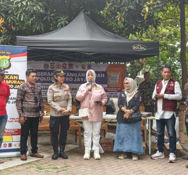 JAKARTA — Dalam upaya membantu masyarakat memperoleh bahan pangan dengan harga terjangkau sekaligus menekan laju inflasi, Polda Metro Jaya bersama Perum Bulog dan Ormas Bang Japar menggelar Gerakan Pangan Murah di Rusunawa Persaki, Kelurahan Duri Kosambi, Kecamatan Cengkareng, Jakarta Barat, Jumat 17/10).
