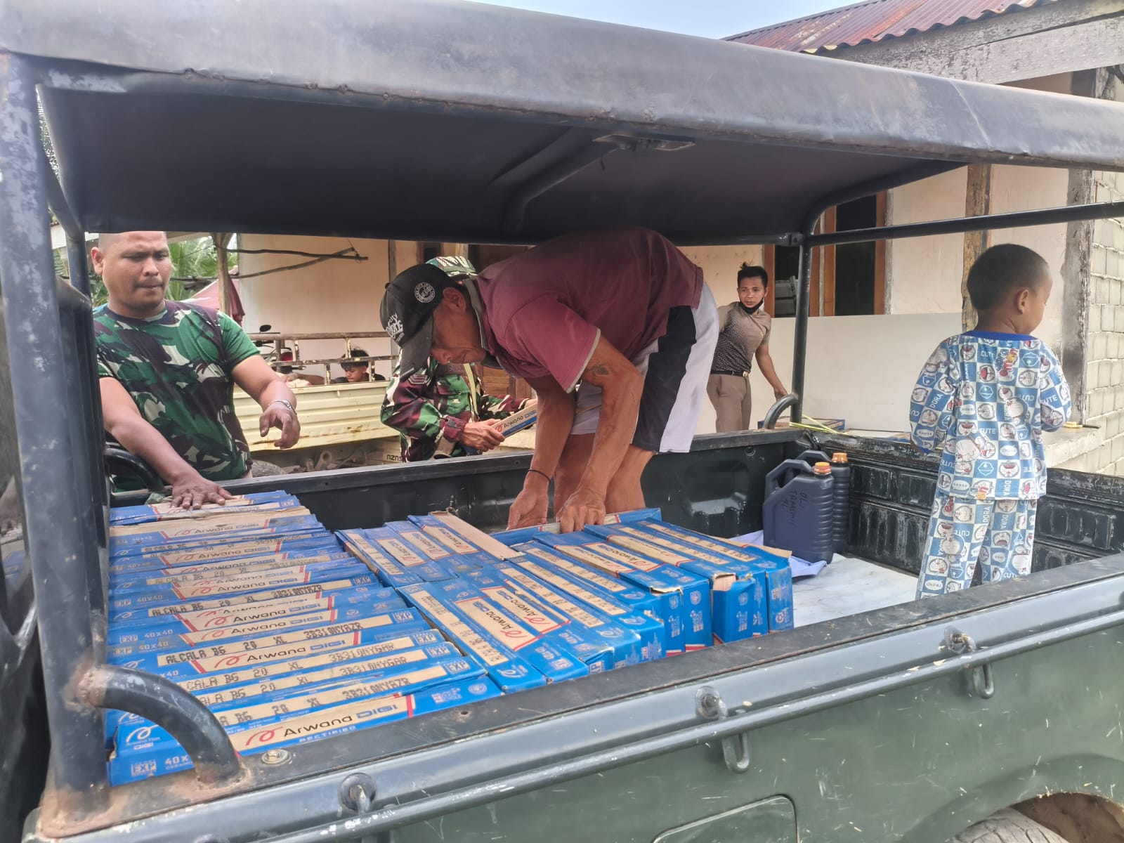 Kegiatan ini berlangsung dengan penuh semangat dan kekompakan, sebagai bagian dari upaya percepatan pembangunan rumah yang menjadi sasaran utama dalam program TMMD. Dengan menggunakan tenaga manual dan alat sederhana, warga dan prajurit TNI saling bahu-membahu mengangkat material keramik dari tempat penyimpanan menuju lokasi pembangunan.