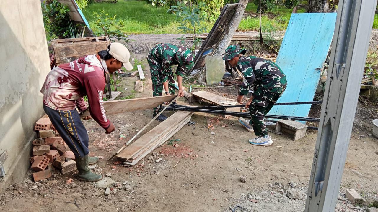 BANYUASIN – Satuan Tugas (Satgas) TNI Manunggal Membangun Desa (TMMD) ke-127 Kodim 0430/Banyuasin (BA) terus memacu pengerjaan Rumah Tidak Layak Huni (RTLH) milik Ibu Suwarti. Hingga saat ini, progres pembangunan telah mencapai 65 persen.