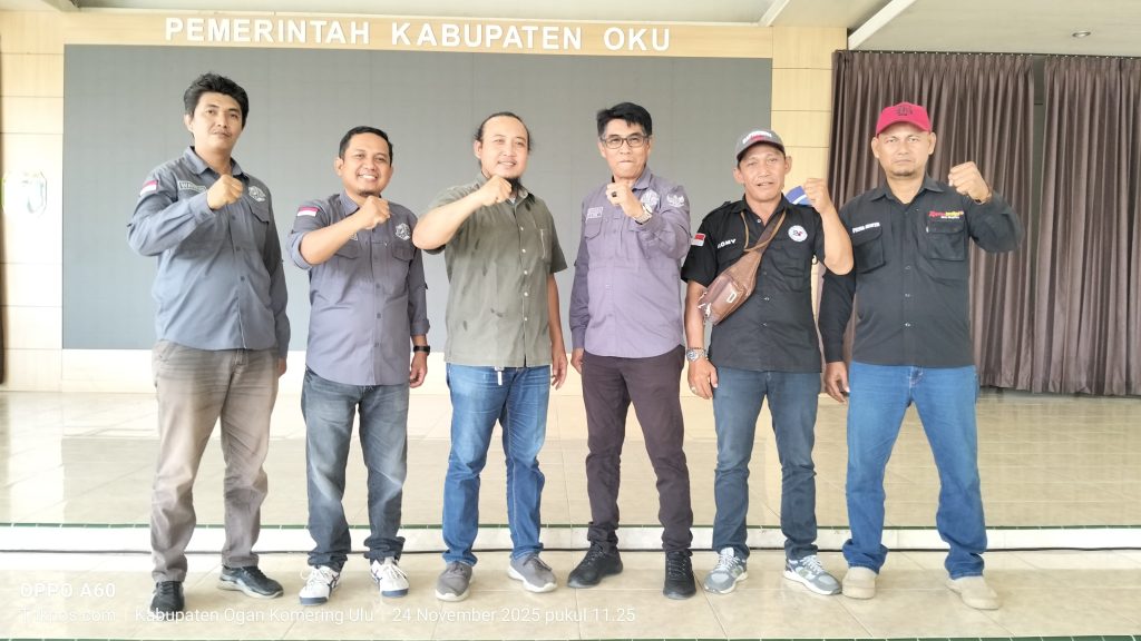 Baturaja — Pengurus Pro Jurnalismedia Siber (PJS) Dewan Pimpinan Cabang (DPC) OKU Selatan menghadiri acara pelantikan pengurus PJS DPC Ogan Komering Ulu (OKU) yang berlangsung di Aula Kantor Bupati OKU, Baturaja, Senin (24/11/2025).