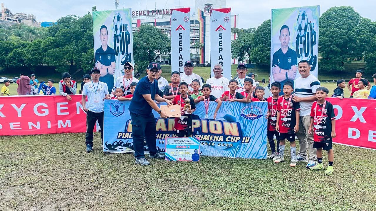 Dharmasraya — SSB DSFA berhasil meraih posisi runner-up kategori usia 10 tahun (KU-10) pada turnamen Yeyen Tumena Cup IV yang berlangsung di Lapangan Indarung, Padang, 11–12 Oktober 2025.