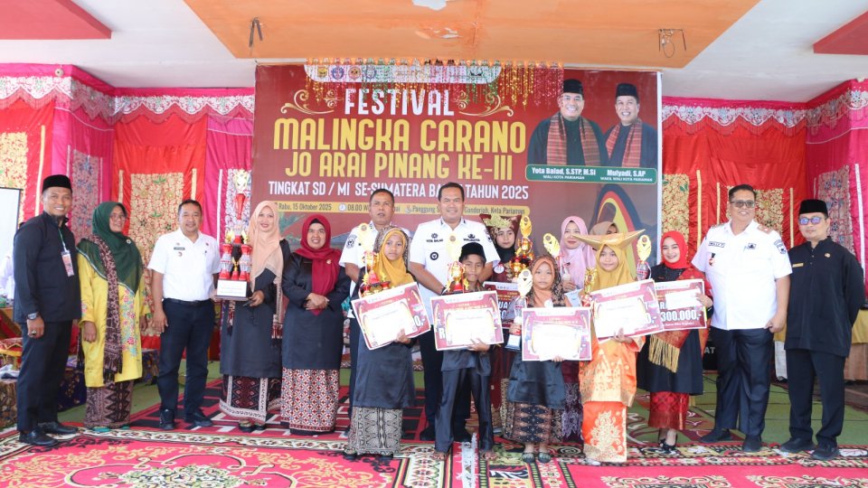 Kota Pariaman — Kemeriahan Festival “Malingka Carano Jo Arai Pinang” Ke-III Tingkat SD/MI se-Sumatera Barat resmi berakhir. Acara yang digelar di Panggung Utama Pantai Gandoriah, Kota Pariaman pada Rabu (15/10) ini sukses menjadi wadah pelestarian budaya Minangkabau di kalangan SD/MI.