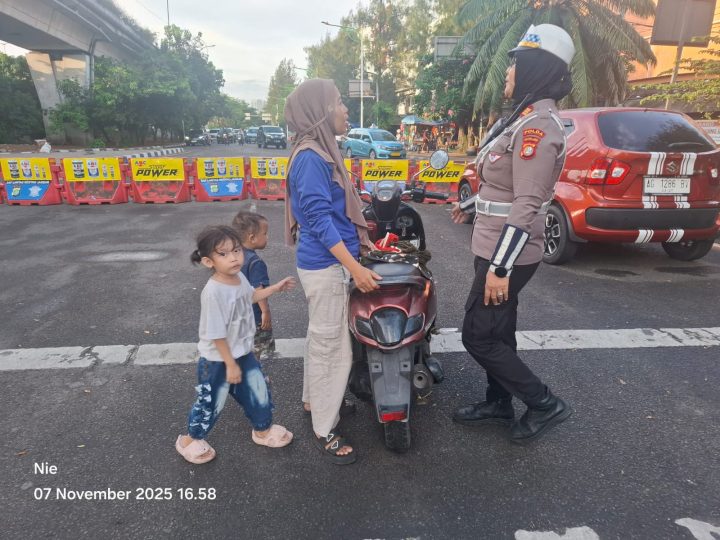 Jakarta — Tindakan humanis diperlihatkan jajaran Unit Lalu Lintas Polsek Cengkareng, Jakarta Barat, saat membantu seorang ibu bersama dua anak kecil yang mendorong sepeda motor mogok di tengah padatnya arus kendaraan di kawasan Traffic Light Cengkareng, Jumat (7/11/2025) sore.