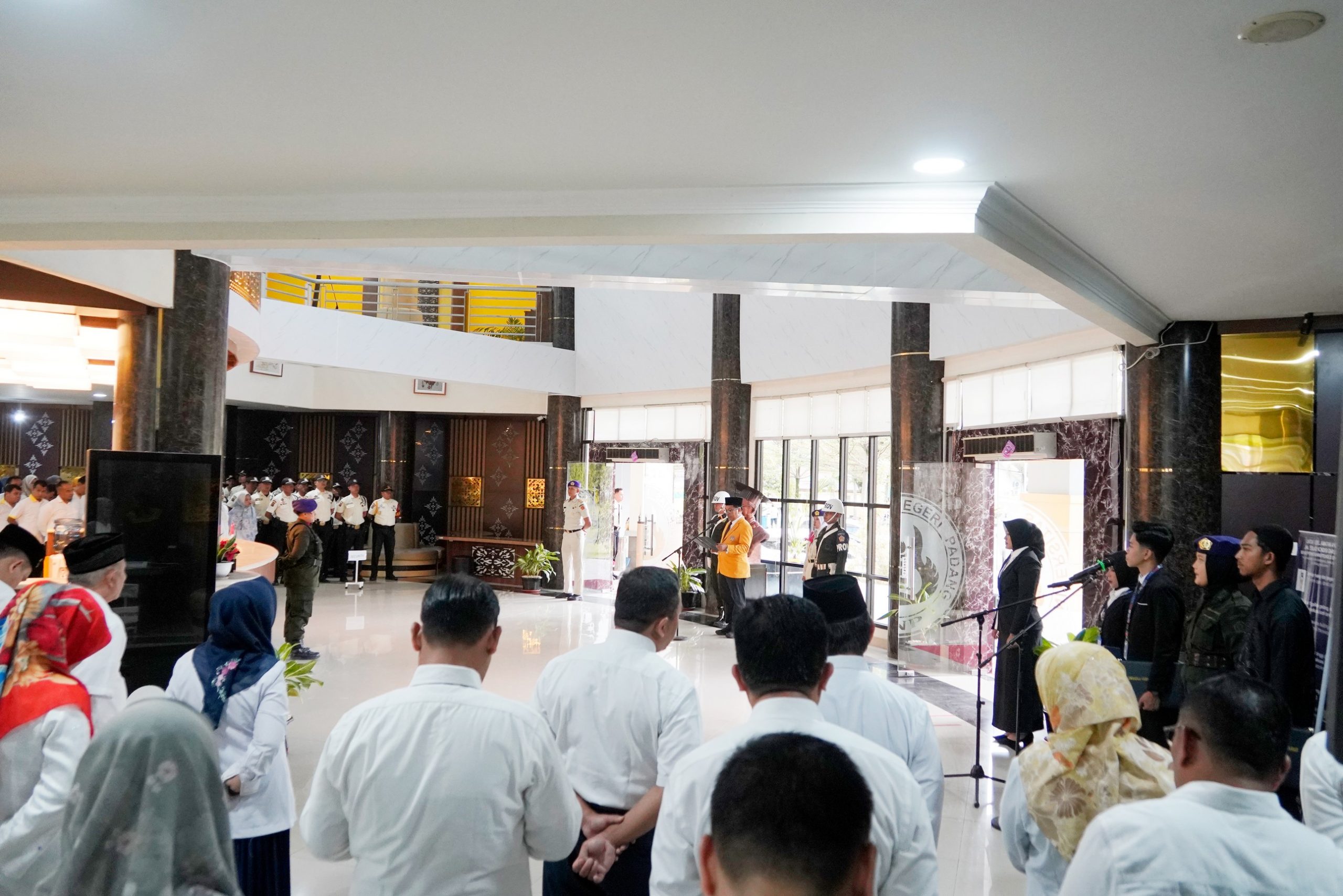 Upacara diikuti oleh jajaran pimpinan universitas, dekan fakultas, dosen, tenaga kependidikan, serta satuan pengamanan UNP. Seluruh peserta tampak antusias mengikuti rangkaian kegiatan hingga akhir upacara.(Syf/Humas UNP)