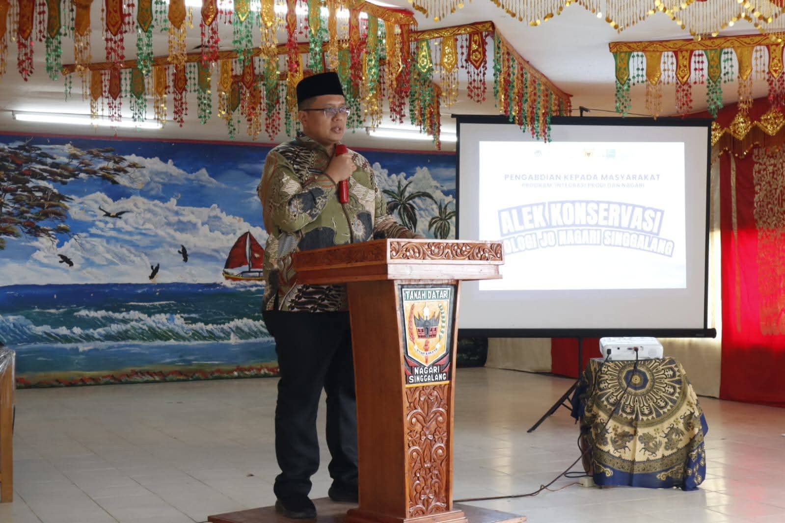 “Dengan telah ditemukan hewan endemik Kelinci Belang Sumatera di hutan kawasan nagari Singgalang dilakukan penelitian sekaligus dilanjutkan dengan pengabdian masyarakat untuk melakukan sosialisasi seperti yang dilaksanakan saat ini melalui kegiatan pelestarian lingkungan yaitu Alek Konservasi Biologi dengan Nagari Singgalang.