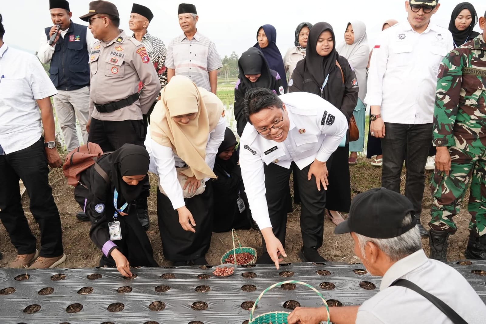 Untuk percepatan dan pencapaian upaya tersebut serta mendukung program pemerintah swasembada pangan, Wakil Bupati Tanah Datar Ahmad Fadly didampingi Kadis Pertanian Sri Mulyani, Kadis Pangan Harfian Fikri, Camat Lima Kaum Ikrar Fahlefi, Forkopimda dan Ketua Kelompok Tani Bawang Merah dan Cabe (BMC) Jaya Nagari Cubadak Itri Nofios melakukan penanaman bibit bawang merah di hamparan lahan kelompok tani BMC Jaya Nagari Cubadak, Rabu (4/6).