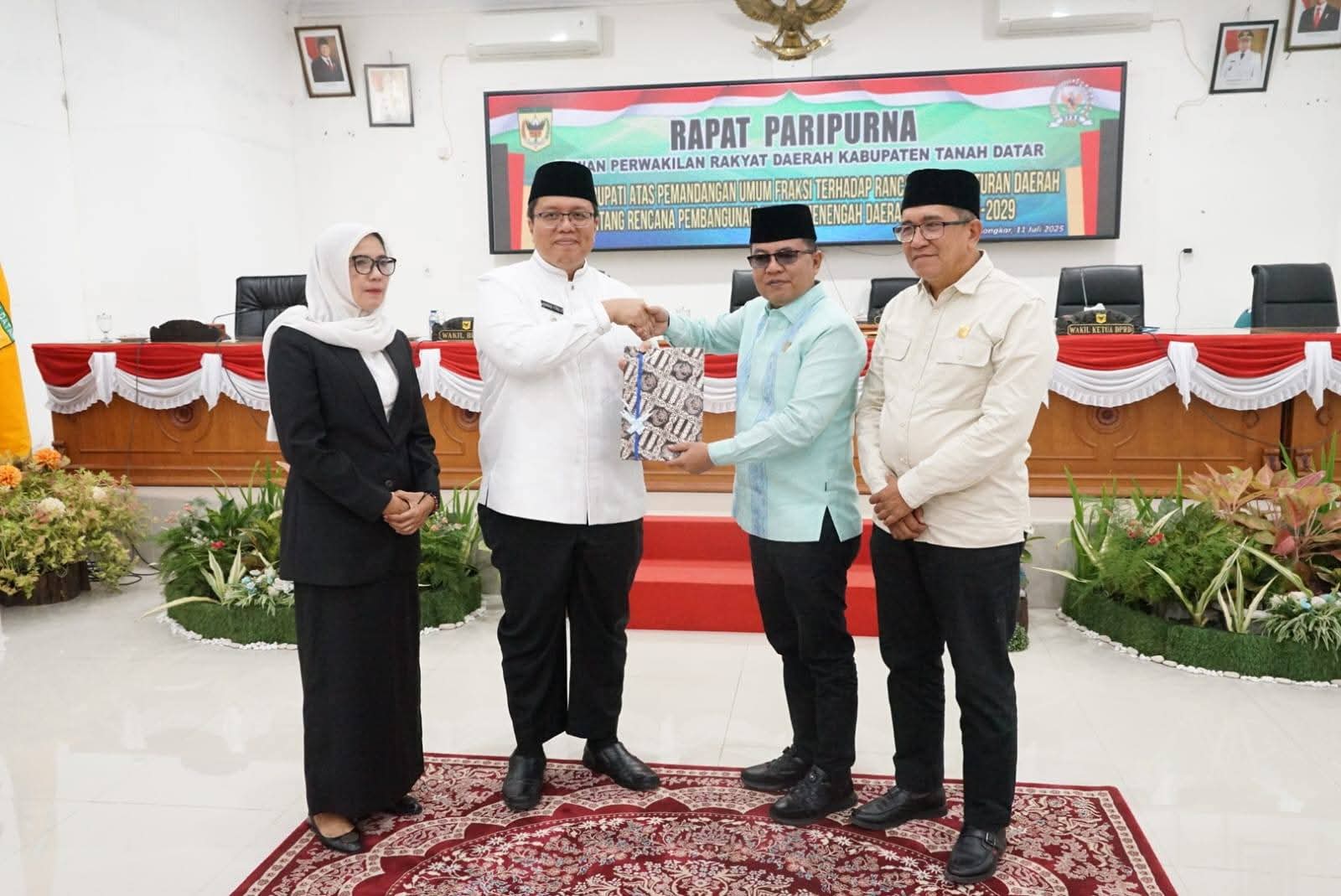 Tanah Datar – Dewan Perwakilan Rakyat Daerah (DPRD) Kabupaten Tanah Datar menggelar Rapat Paripurna Jawaban Bupati atas Pemandangan Umum Fraksi terhadap Rancangan Peraturan Daerah (Ranperda) tentang Rencana Pembangunan Jangka Menengah Daerah (RPJMD) Tahun 2025-2029, Jum’at (11/7) di Ruang Sidang Utama DPRD setempat.