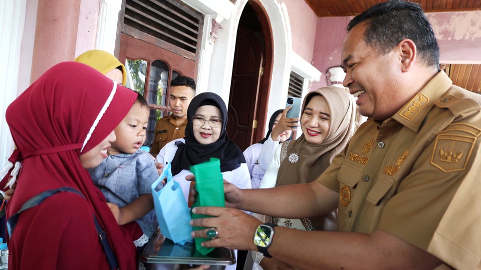 Kota Pariaman — Wali Kota Pariaman Yota Balad didampingi Bunda Paud Kota Pariaman, Ny. Yosnely Balad melaunching Makan Bergizi Gratis (MBG) Ibu Hamil, Ibu Menyusui dan Balita (3B) Kecamatan Pariaman Tengah bertempat di Rumah Kader Tim Pendamping Keluarga (TPK) Kelurahan Alai Gelombang, Kecamatan Pariaman Tengah Kota Pariaman, Senin (13/10/2025).