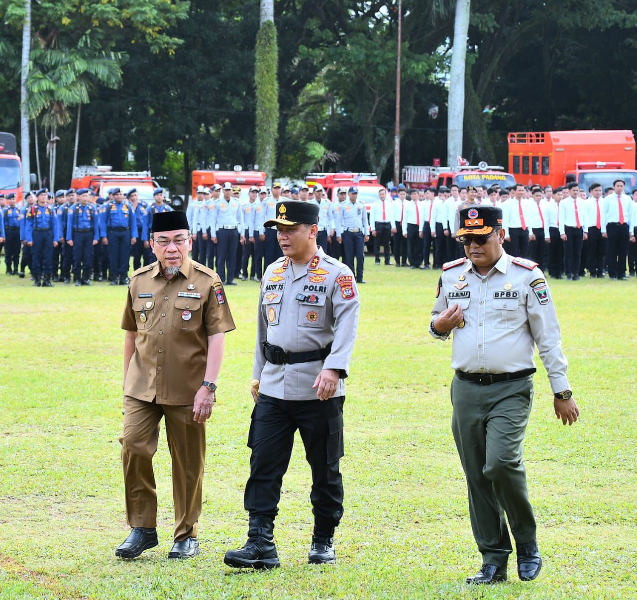 Hadir langsung Kapolda Sumbar, Irjen Pol Gatot Tri Suryanta, selaku inspektur upacara, unsur Forkopimda Sumbar dan Kota Padang, serta berbagai pemangku kepentingan kebencanaan lainnya.